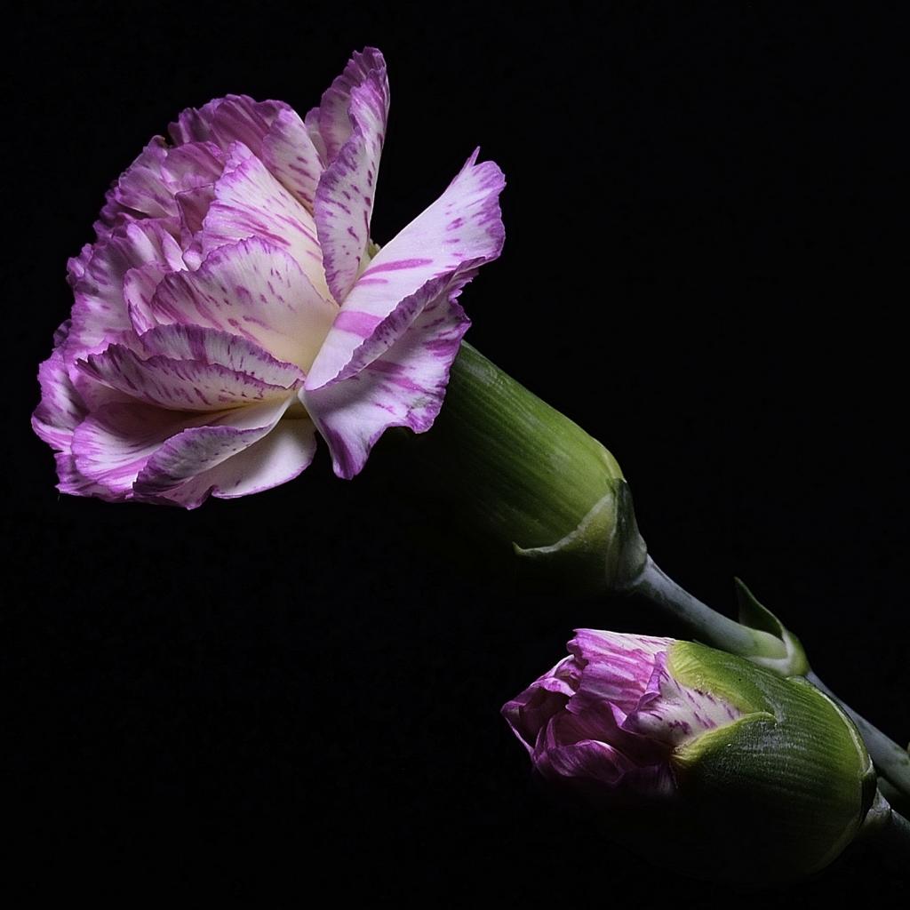 » Wallpaper Pink carnation with a bud on a black background