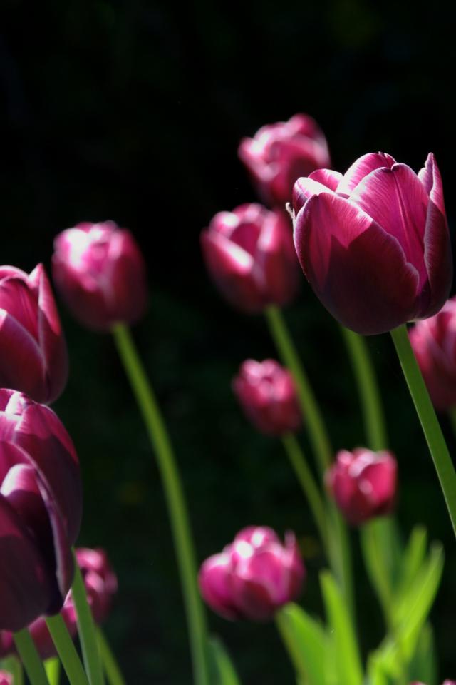 Wallpaper Burgundy tulips with white rims on a black background
