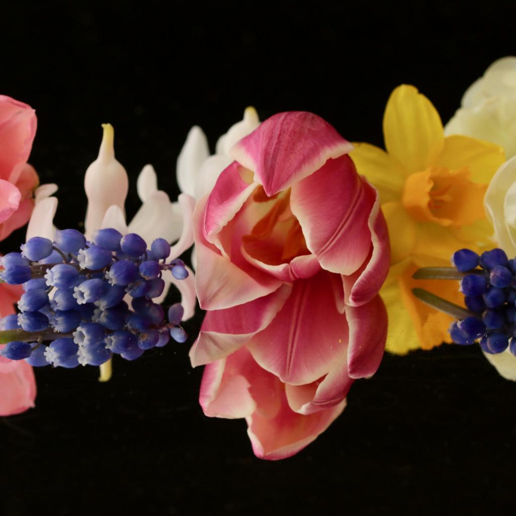 Wallpaper Beautiful spring flowers on black background close-up