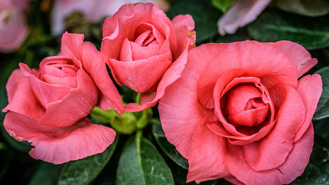 Wallpaper Three delicate pink begonia flowers close up