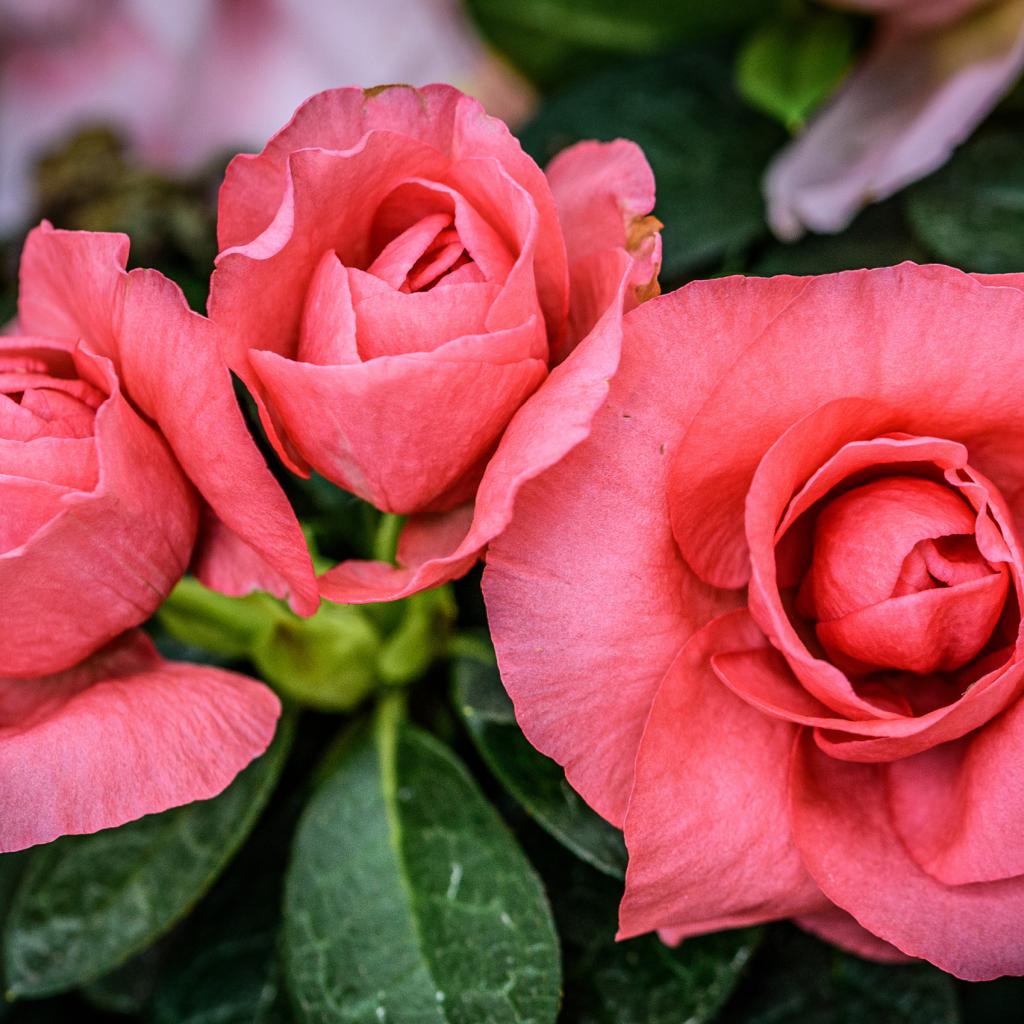 Wallpaper Three delicate pink begonia flowers close up
