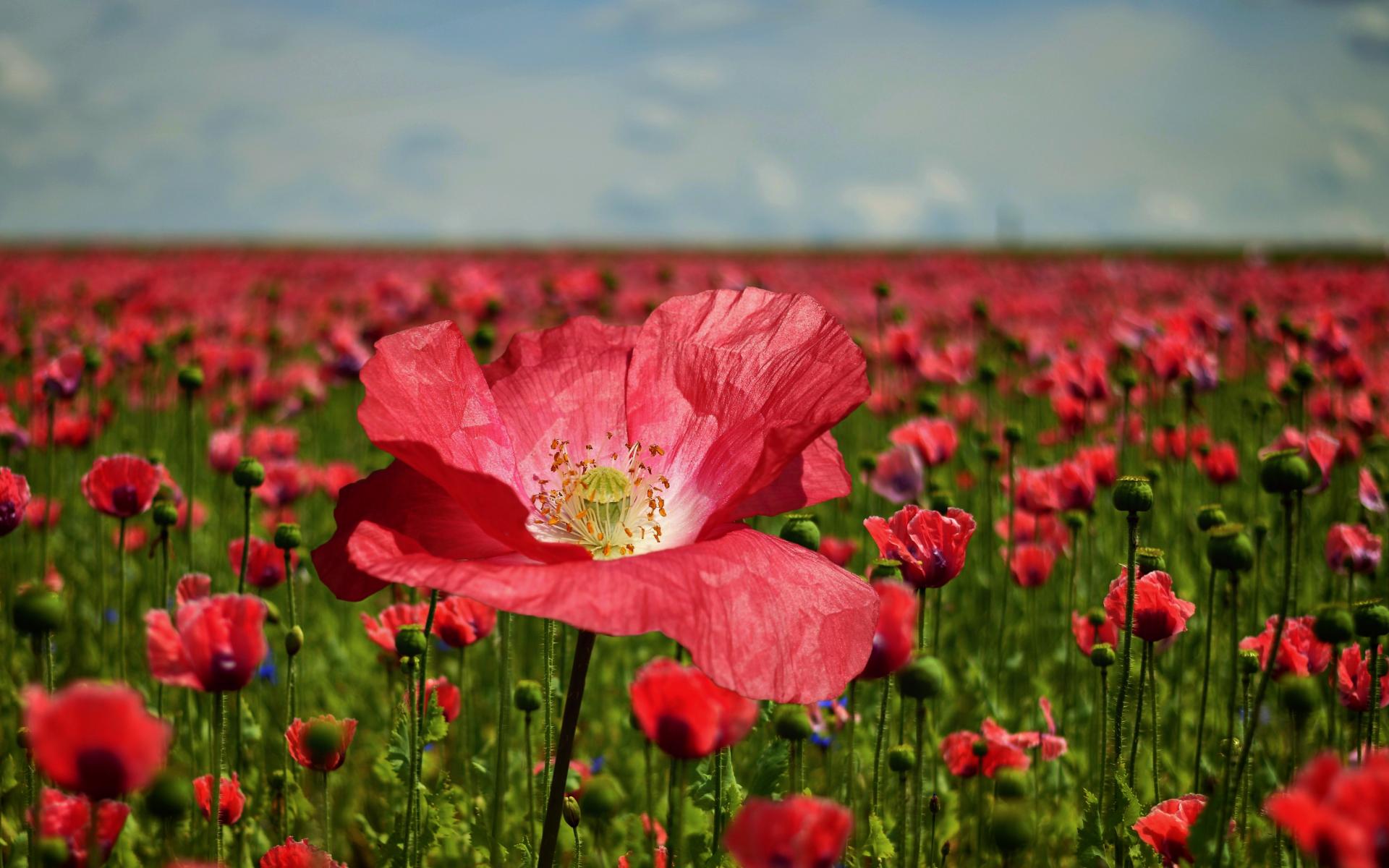 Wallpaper Beautiful red poppy on the field close-up