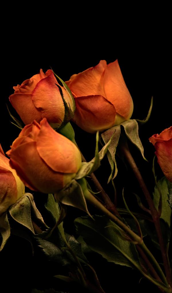 Wallpaper Five orange roses on a black background