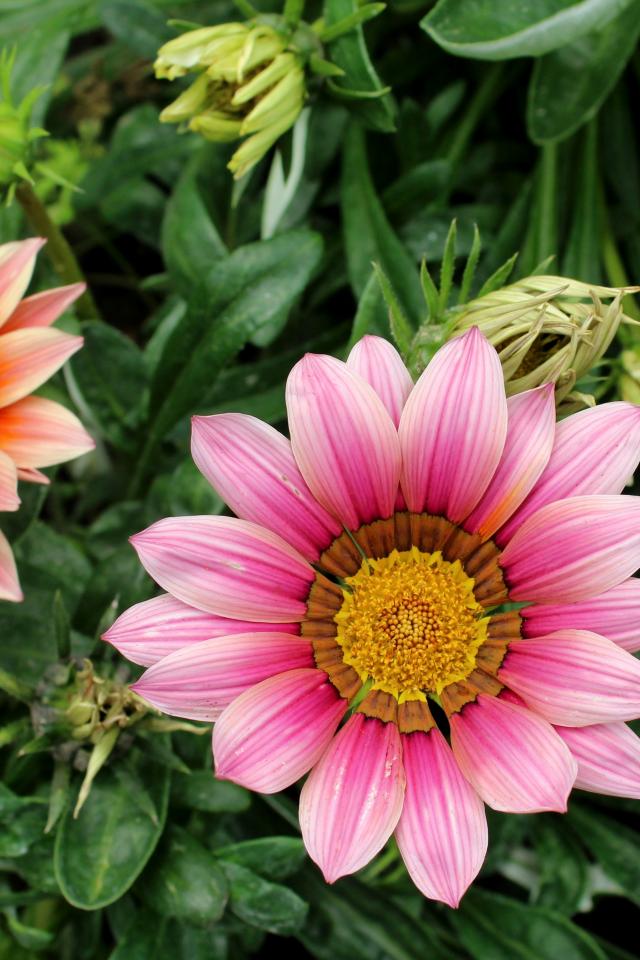 Wallpaper Pink gazania flowers with buds on a flower bed