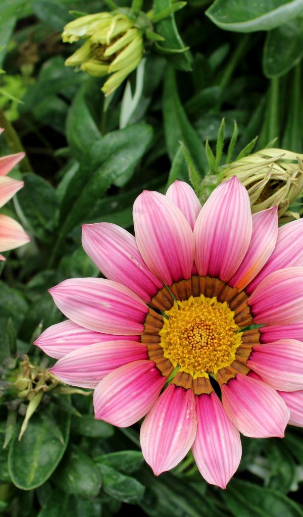 Wallpaper Pink gazania flowers with buds on a flower bed