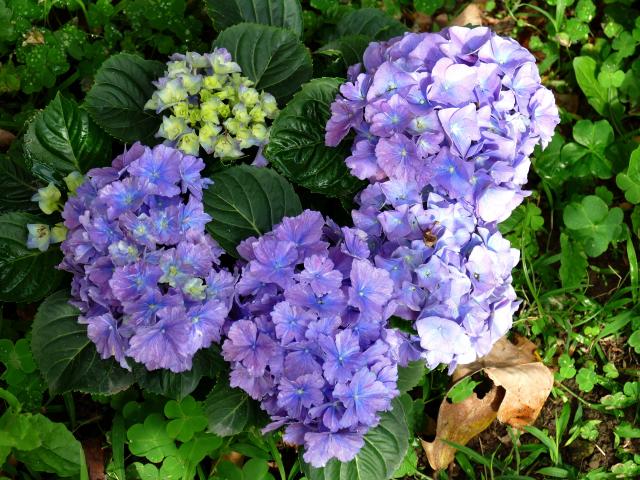 Wallpaper Blue hydrangea flowers with green leaves