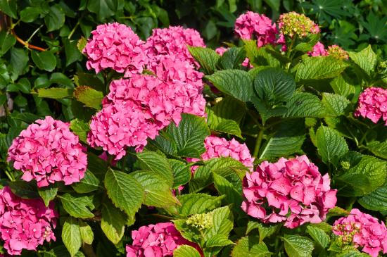 Wallpaper Beautiful pink hydrangea flowers with green leaves