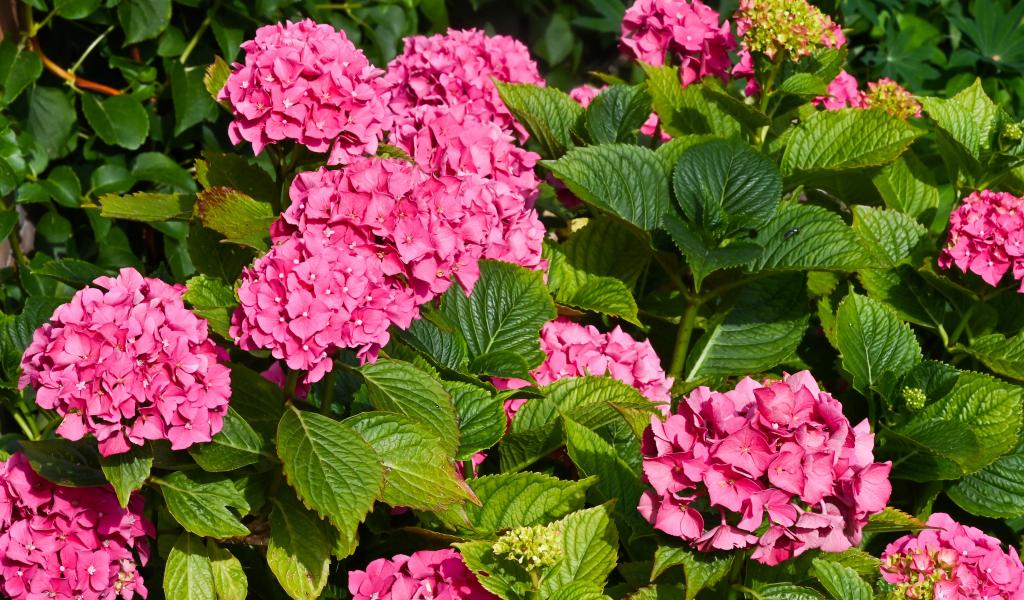 Wallpaper Beautiful pink hydrangea flowers with green leaves