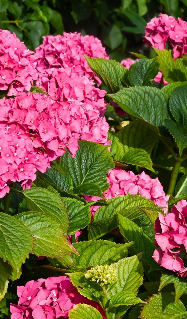 Wallpaper Beautiful pink hydrangea flowers with green leaves