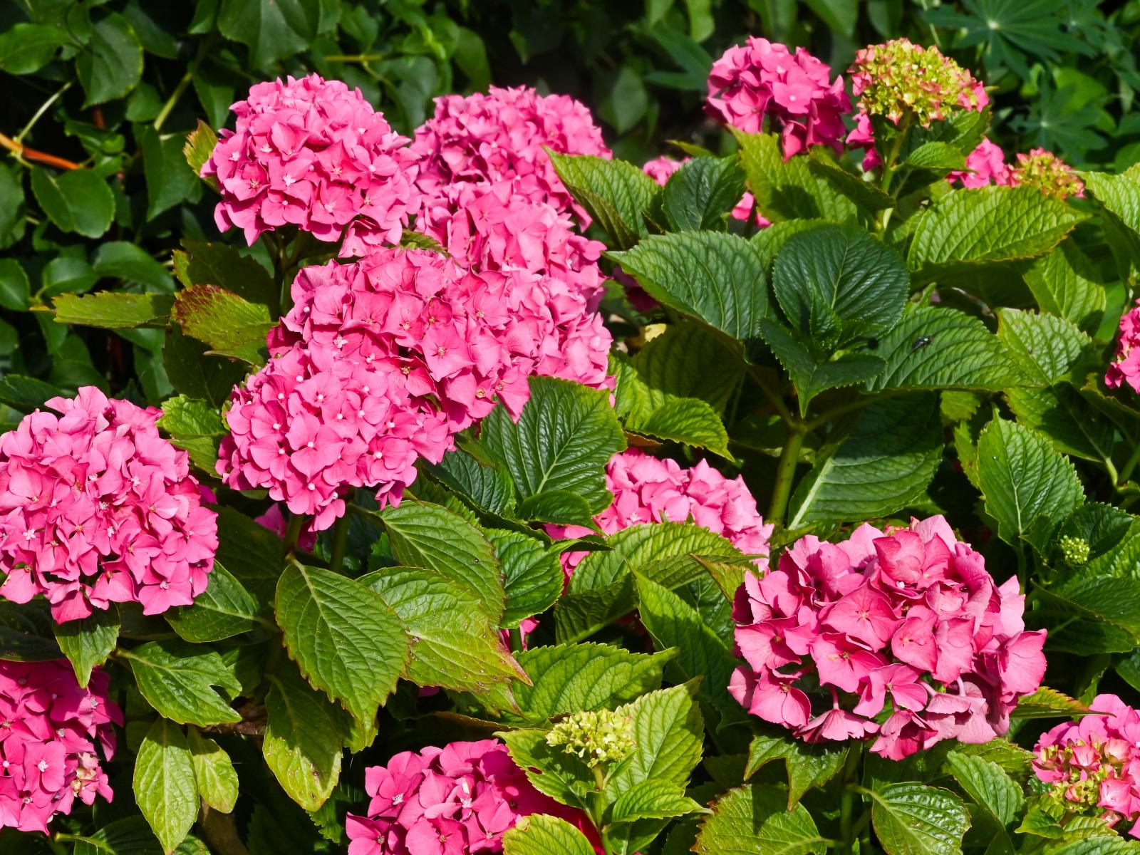 Wallpaper Beautiful pink hydrangea flowers with green leaves