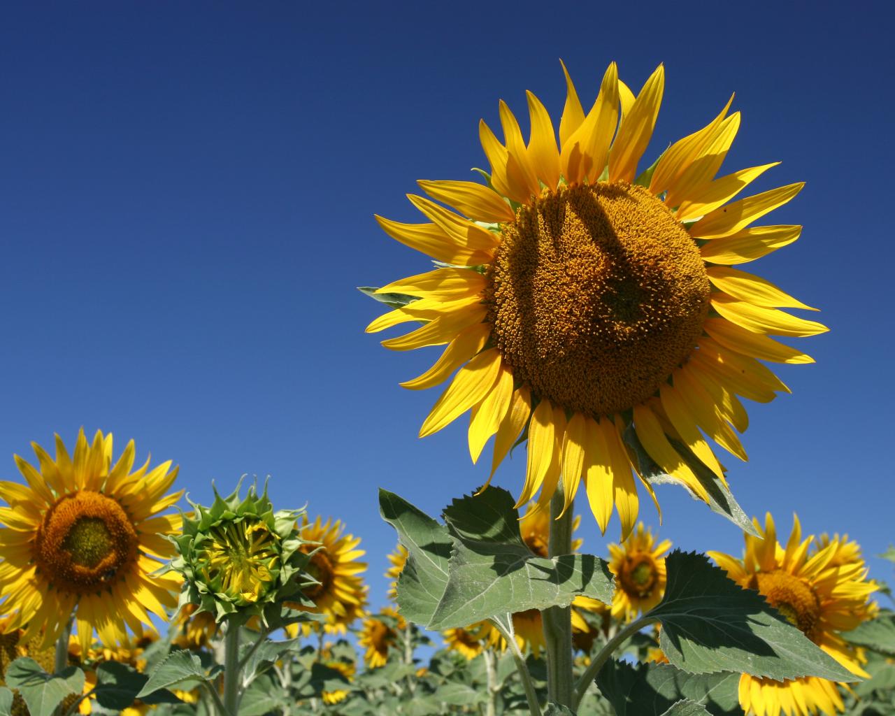 Wallpaper Yellow blooming sunflowers on a background of blue sky