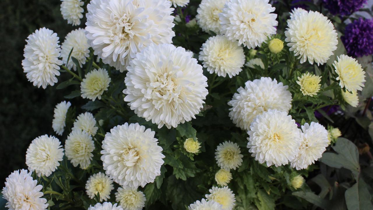 Wallpaper Beautiful white asters in the flowerbed