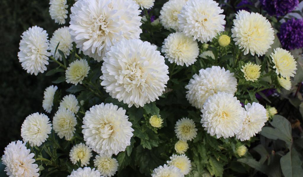 Wallpaper Beautiful white asters in the flowerbed