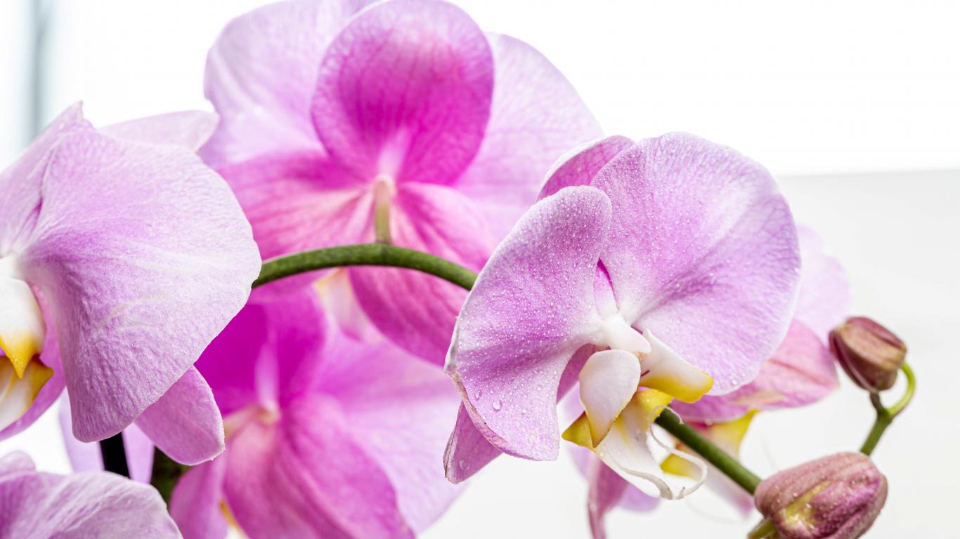 Wallpaper Delicate pink chrysanthemum with buds on a white background