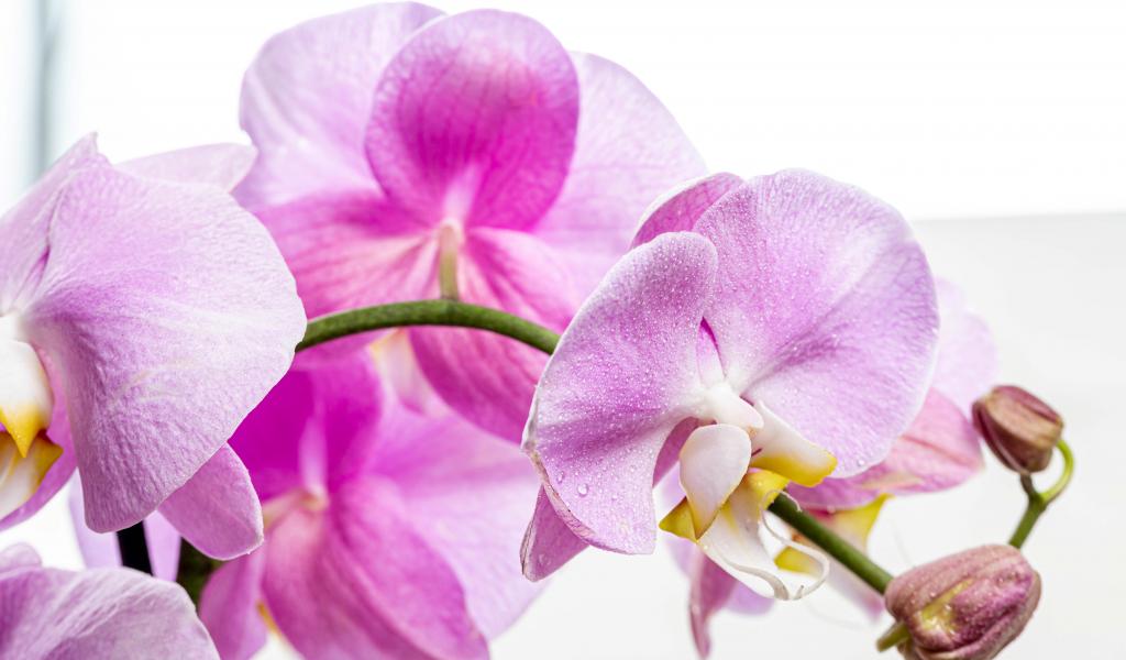 Wallpaper Delicate pink chrysanthemum with buds on a white background