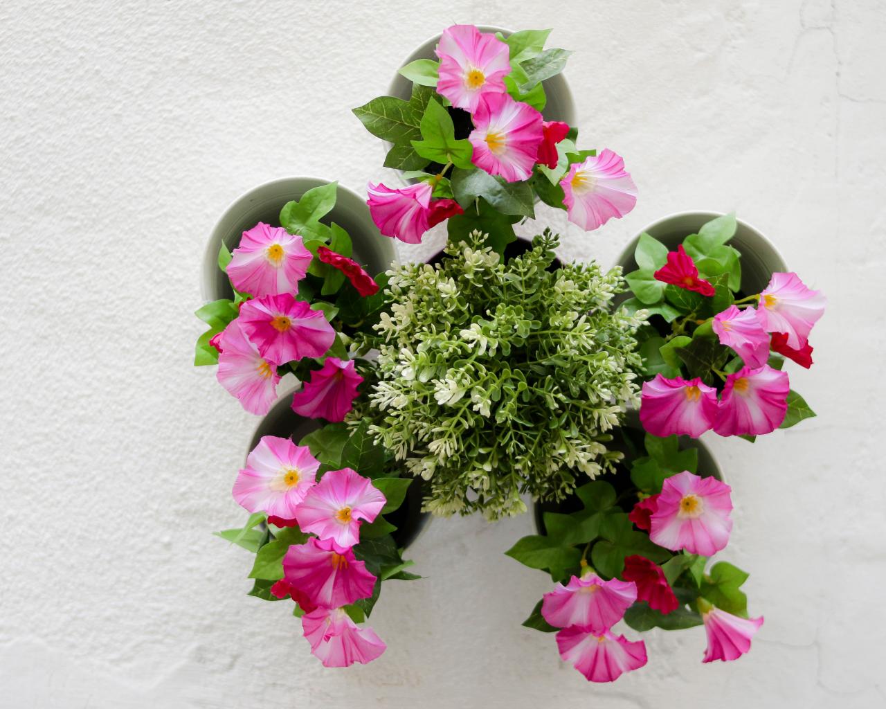Wallpaper Pink petunia flowers on a gray background