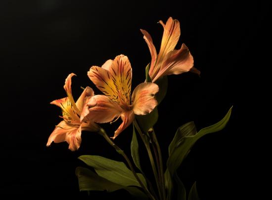 Wallpaper Orange alstroemeria flowers on a black background