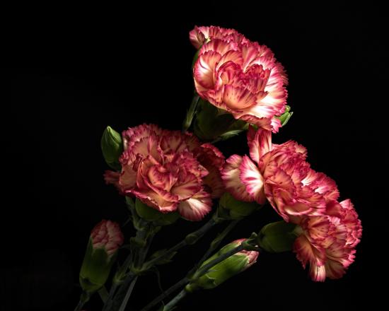 Wallpaper Beautiful pink carnations with buds on a black background