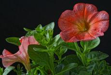 Wallpaper Beautiful red petunia with buds on a black background