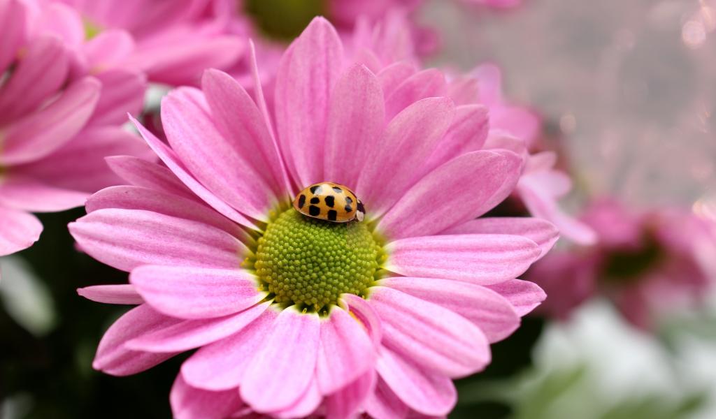 Wallpaper Pink Chrysanthemum Flower with Ladybug