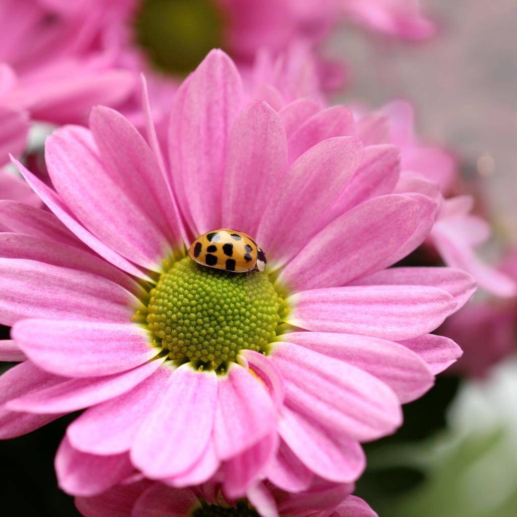 Wallpaper Pink Chrysanthemum Flower with Ladybug