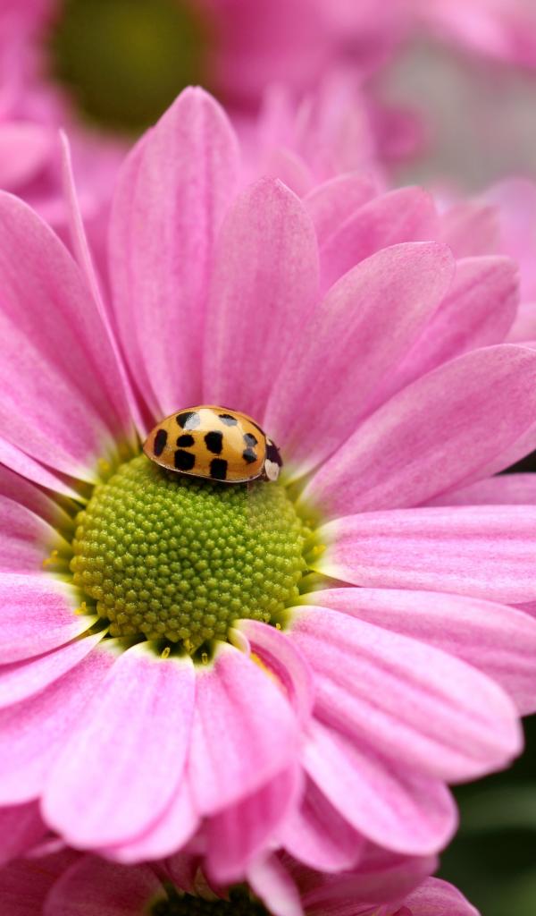 Wallpaper Pink Chrysanthemum Flower with Ladybug