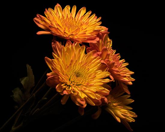 Wallpaper Beautiful orange chrysanthemums on a black background