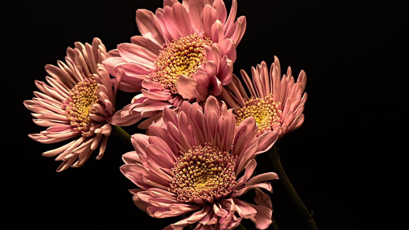 Wallpaper Pink beautiful chrysanthemums on a black background