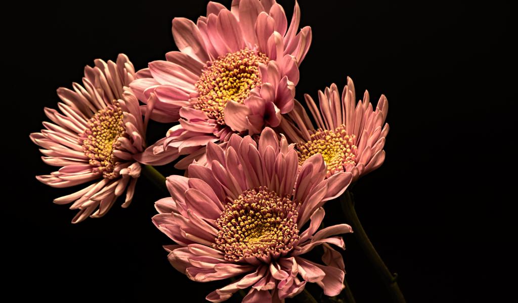 Wallpaper Pink beautiful chrysanthemums on a black background