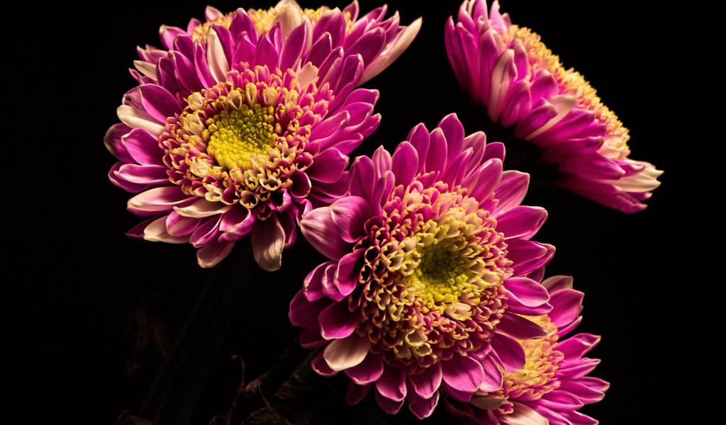 Wallpaper Beautiful pink chrysanthemums on a black background