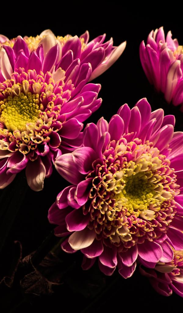 Wallpaper Beautiful pink chrysanthemums on a black background