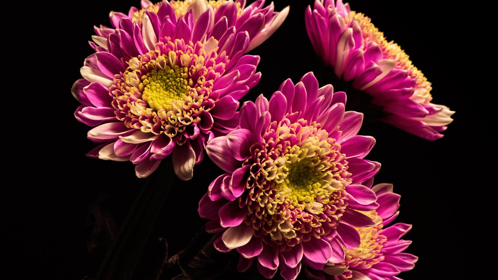 Wallpaper Beautiful pink chrysanthemums on a black background