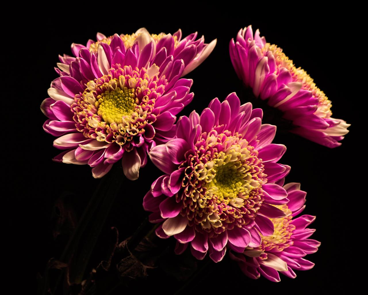 Wallpaper Beautiful pink chrysanthemums on a black background