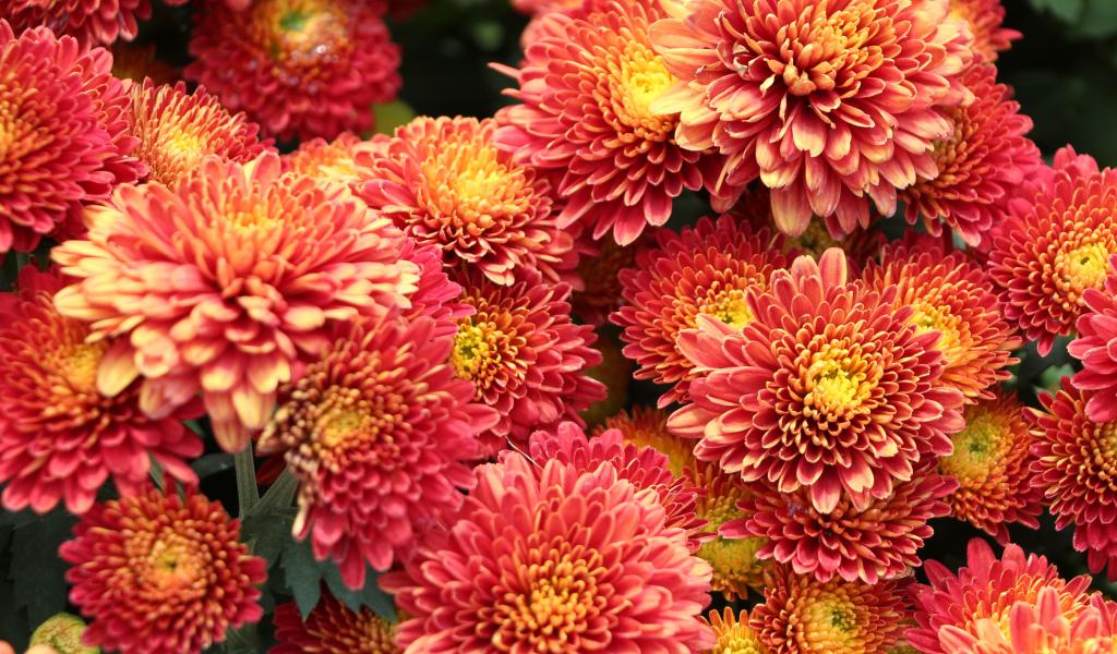 Wallpaper Orange fluffy chrysanthemums close-up