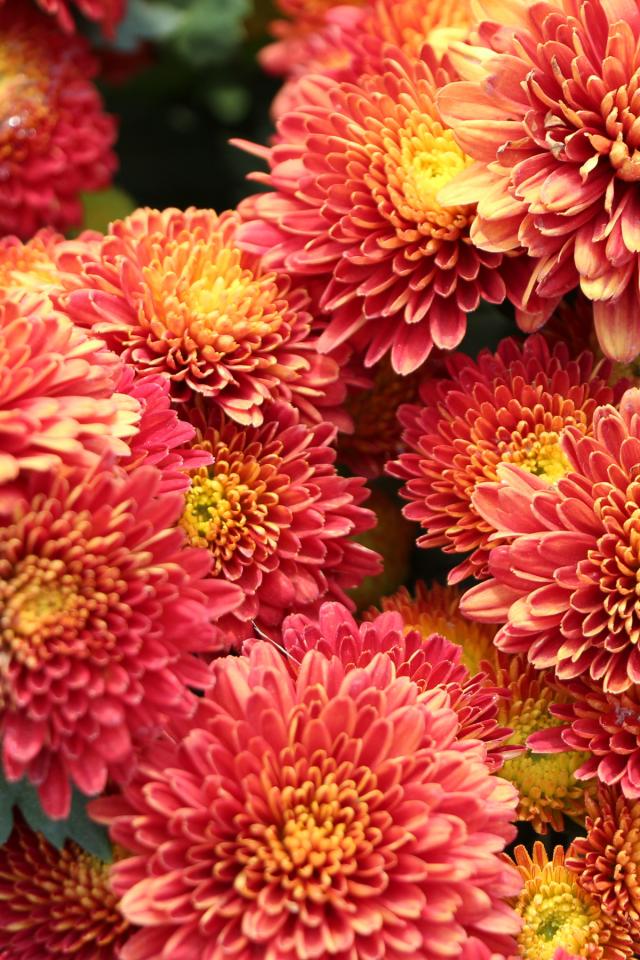 Wallpaper Orange fluffy chrysanthemums close-up