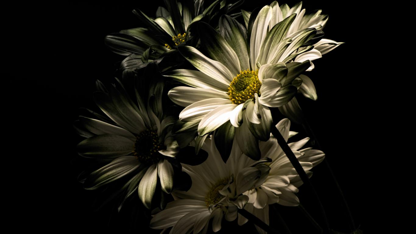 Wallpaper White chrysanthemum flowers on a black background