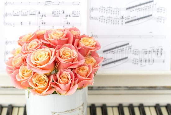 Wallpaper A beautiful bouquet of pink roses stands on the piano