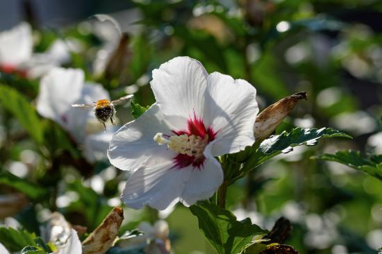 Wallpaper Tender white hibiscus flowers in the sun in the garden