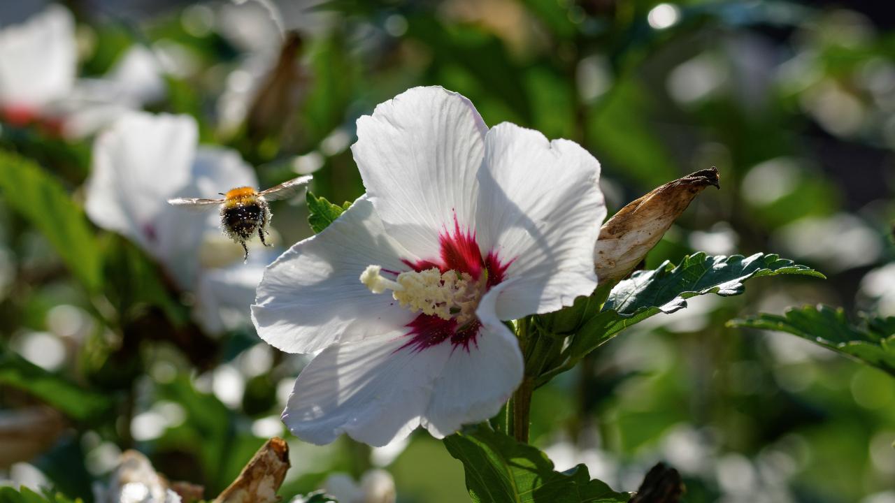 Wallpaper Tender white hibiscus flowers in the sun in the garden