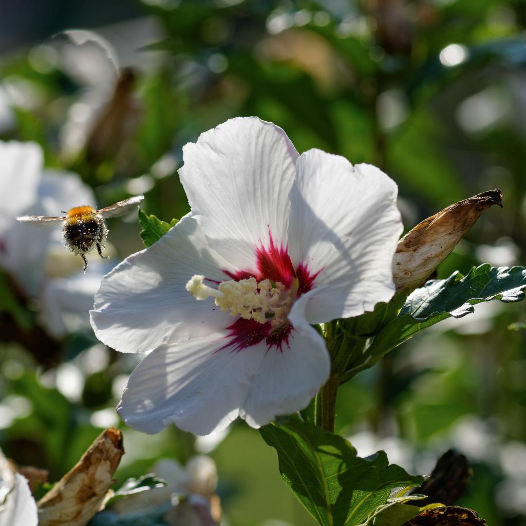 Wallpaper Tender white hibiscus flowers in the sun in the garden