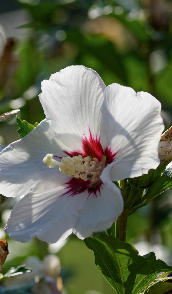 Wallpaper Tender white hibiscus flowers in the sun in the garden
