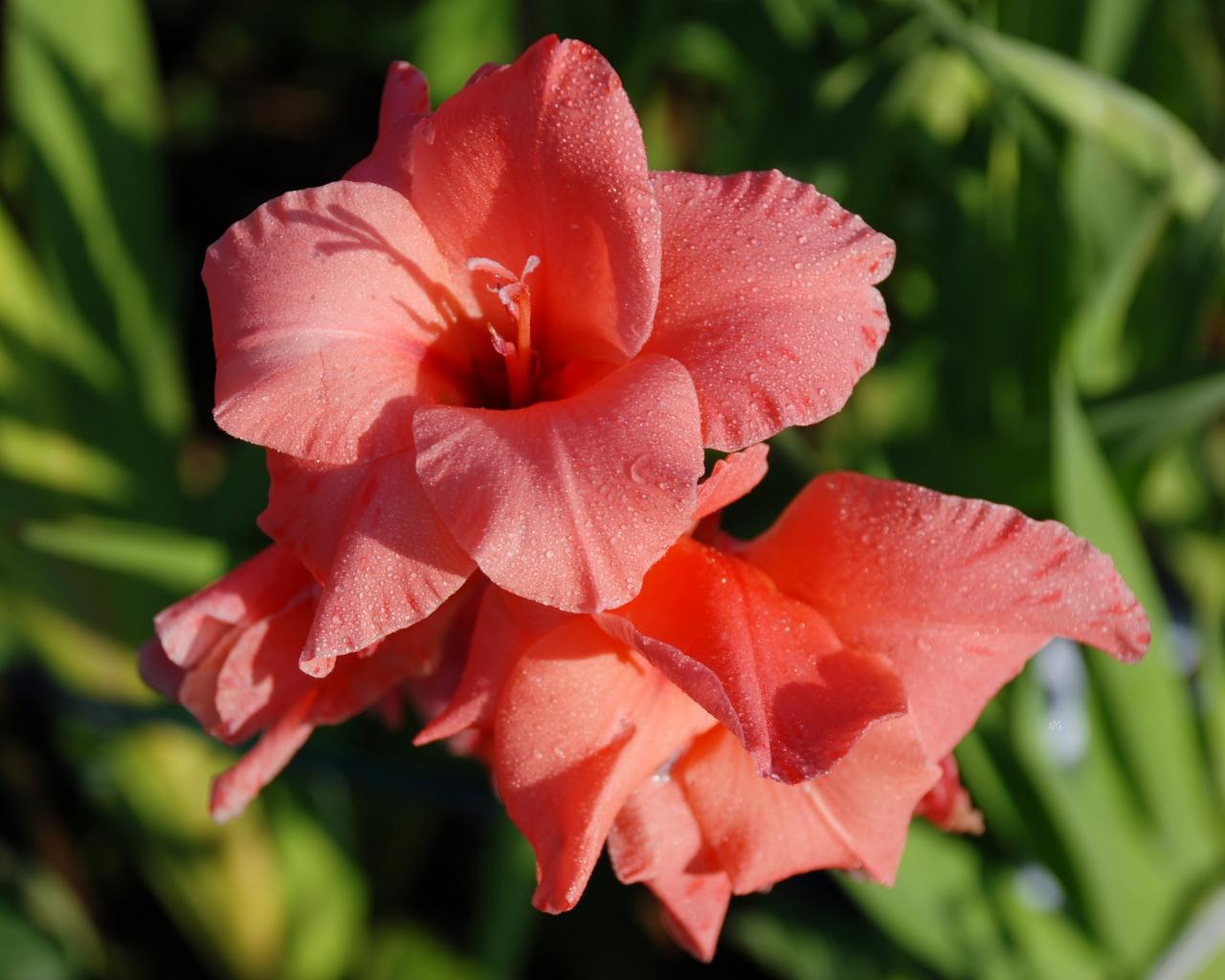Wallpaper Delicate gladiolus flowers in dew drops