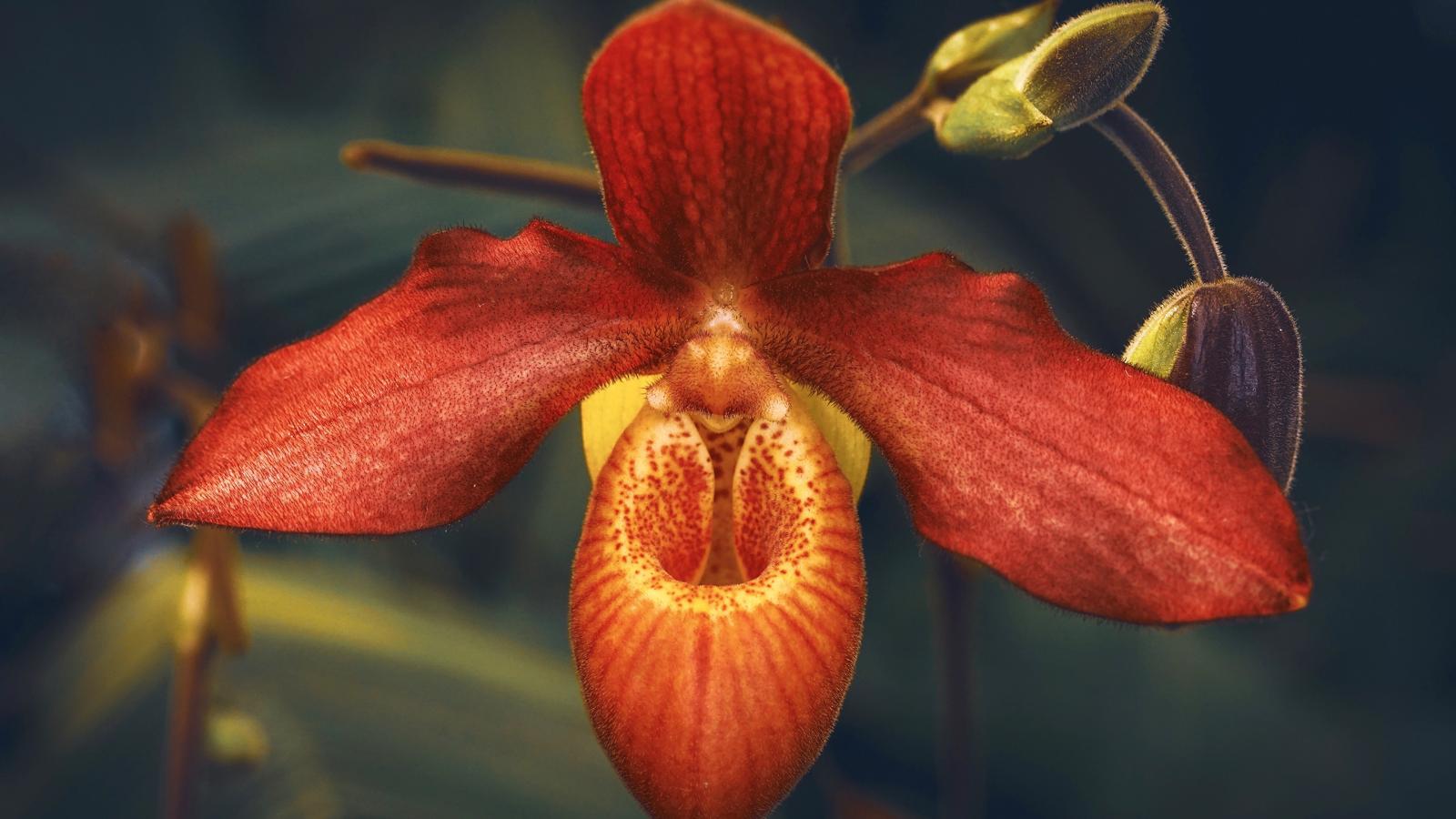 Wallpaper Unusual orange orchid with buds
