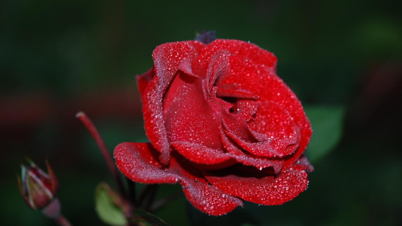 Wallpaper Beautiful red rose with buds in the drops of dew
