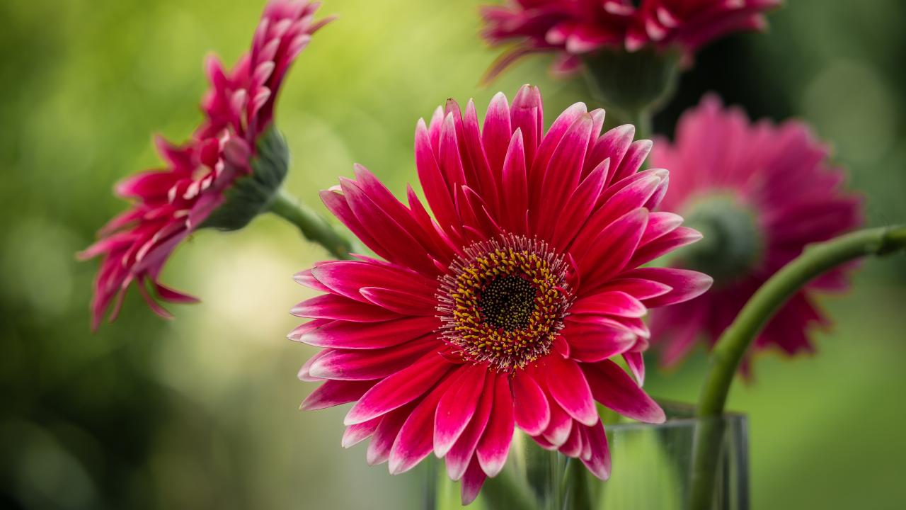 Wallpaper Bouquet of pink gerberas in a glass vase