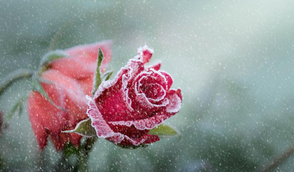 Wallpaper Winter frosted red rose
