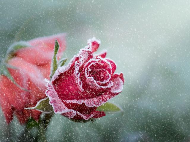 Wallpaper Winter frosted red rose