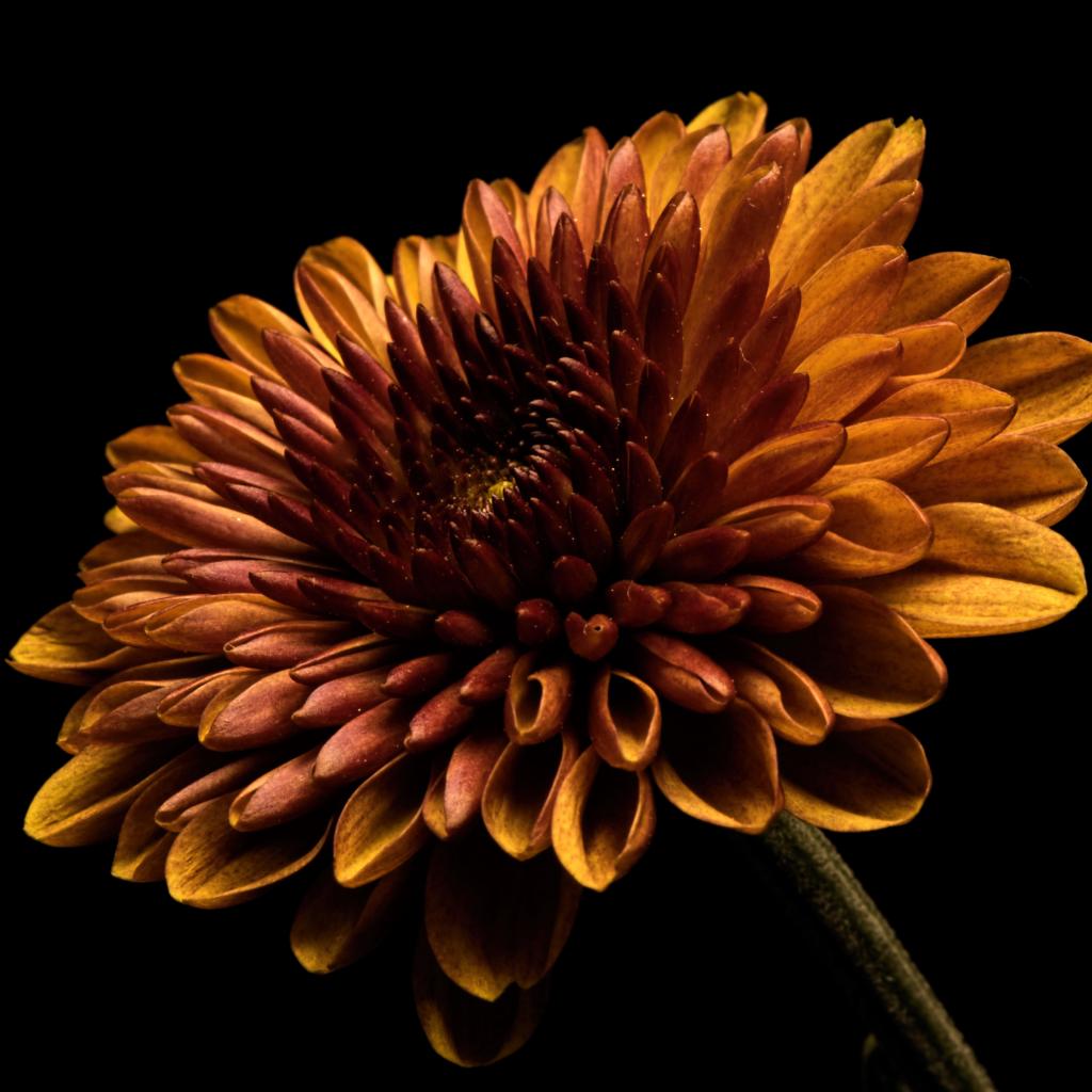 » Wallpaper Orange chrysanthemum flower on a black background close-up