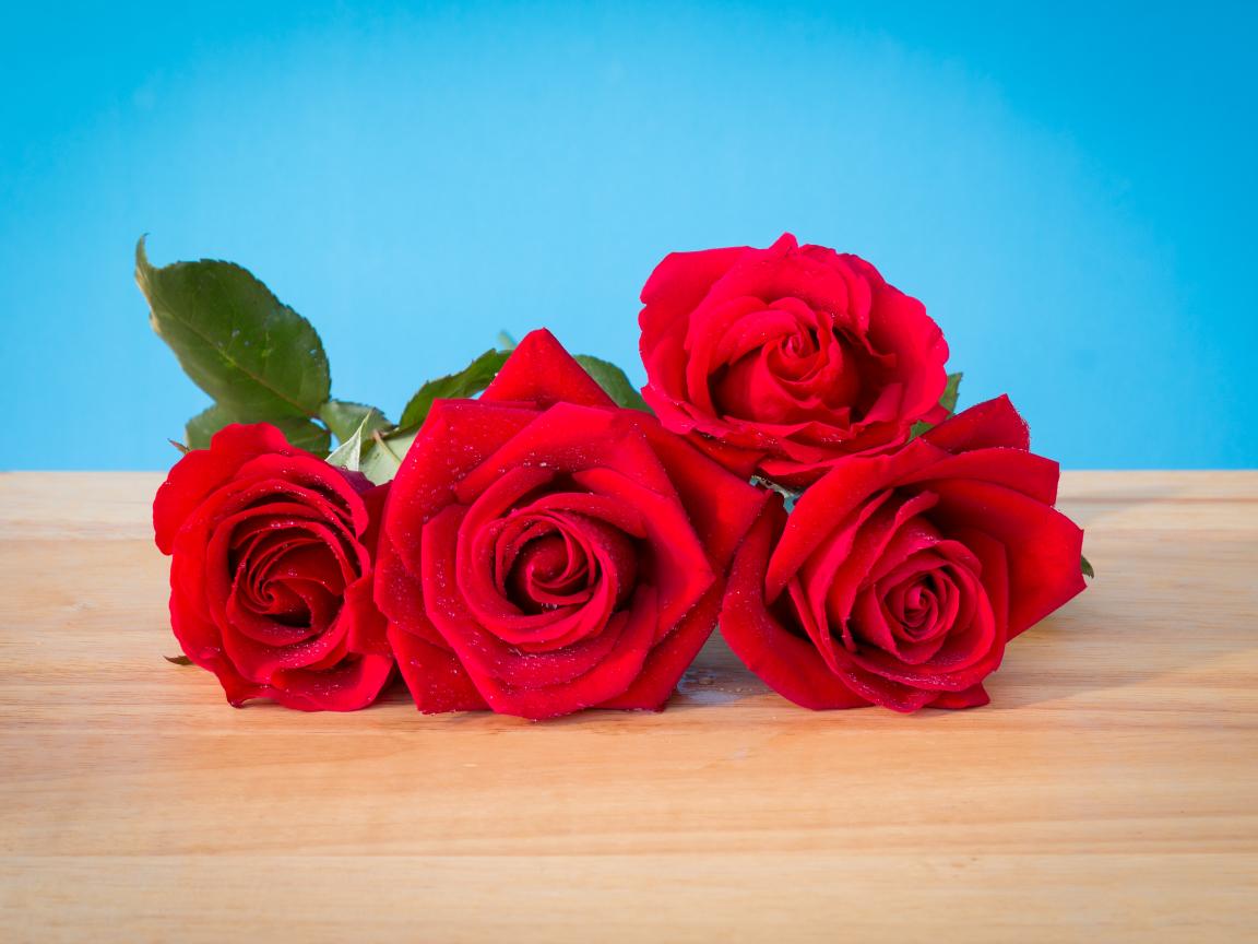 Wallpaper Bouquet of red roses on a blue background