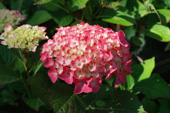 Wallpaper Pink hydrangea on a flowerbed in the sun